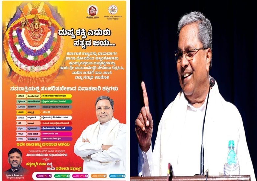Political news: ಈ ಬಾರಿ ನವರಾತ್ರಿಗೆ ಕಾಂಗ್ರೆಸ್ ಪಕ್ಷ ದುಷ್ಟ ಶಕ್ತಿ ಎದುರು ಸತ್ಯದ ಜಯ ಎಂಬ ಜಾಾಹೀರಾತು ನೀಡಿತ್ತು. ಅದರಲ್ಲಿ ನವರಾತ್ರಿಗೆ 9 ರೀತಿಯ ಸಂಹರಿಸಬೇಕಾದ ದುಷ್ಟಶಕ್ತಿಗಳು ಎಂದು ಬರೆದಿತ್ತು. ಈ ಜಾಹೀರಾತಿಗೆ ಬಿಜೆಪಿ ವಿರೋಧ ವ್ಯಕ್ತಪಡಿಸಿತ್ತು. ಇದೀಗ ಸಿಎಂ ಸಿದ್ದರಾಮಯ್ಯ ಈ ಬಗ್ಗೆ ಟ್ವೀಟ್ ಮಾಡಿ, ಬಿಜೆಪಿ ವಿರುದ್ಧ ವ್ಯಂಗ್ಯಾವಾಡಿದ್ದಾರೆ.