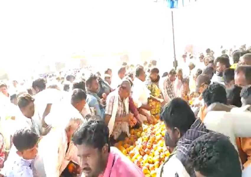 ಈ ವೇಳೆ ಹಣ್ಣುಗಳು ರಸ್ತೆಗೆ ಬಿದ್ದಿದ್ದು, ರಸ್ತೆಗೆ ಬಿದ್ದಿದ್ದ ಹಣ್ಣನ್ನು ಆಯ್ದುಕೊಳ್ಳಲು ಜನ ಮುxದಾಗಿದ್ದು, ವಾಹನ ಸವಾರರು ರಸ್ತೆಯಲ್ಲೇ ನಿಂತು ಪರದಾಡಬೇಕಾಯಿತು. ಹಾಗಾಗಿ ಟ್ರಾಫಿಕ್ ಜಾಮ್ ಉಂಟಾಗಿದ್ದು, ಪೊಲೀಸರು ಟ್ರಾಫಿಕ್ ಜಾಮ್ ತೆರವುಗೊಳಿಸಲು ಹರಸಾಹಸಪಟ್ಟರು.