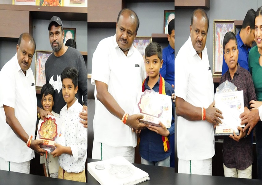 ಕೇಂದ್ರದ ಭಾರೀ ಕೈಗಾರಿಕೆ ಮತ್ತು ಉಕ್ಕು ಖಾತೆ ಸಚಿವರಾದ ಹೆಚ್.ಡಿ.ಕುಮಾರಸ್ವಾಮಿ ಅವರು ಪಕ್ಷದ ಕಚೇರಿಯಲ್ಲಿ ವಿಜೇತ್ ಮಕ್ಕಳಿಗೆ ಬಹುಮಾನ ವಿತರಿಸಿದರು.