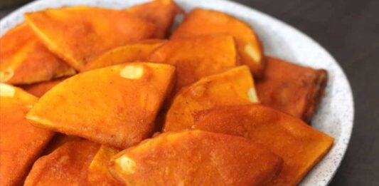 Recipe: ಬೇರುಹಲಸಿನ ಬಜ್ಜಿ ತಯಾರಿಸಲು, ಒಂದು ಕಪ್ ಜೀಗುಜ್ಜೆ ಸ್ಲೈಸ್, ಒಂದು ಕಪ್ ಅಕ್ಕಿ, 3 ಒಣಮೆಣಸು, ಕೊಂಚ ಕೊತ್ತೊಂಬರಿ ಕಾಳು, ಜೀರಿಗೆ, ಚಿಟಿಕೆ ಹಿಂಗು, ಹುಣಸೆ, ಅರಶಿನ, ಬೆಲ್ಲ, ಉಪ್ಪು, ಕರಿಯಲು ಎಣ್ಣೆ ಬೇಕು. ಮೊದಲು ಅಕ್ಕಿಯನ್ನು ರಾತ್ರಿ ನೆನೆಸಿಟ್ಟುಕೊಳ್ಳಬೇಕು. ಅಥವಾ 5 ಗಂಟೆ ಅಕ್ಕಿ ನೆನೆಸಿಟ್ಟರೂ ಸಾಕು. ಬಳಿಕ ಒಣಮೆಣಸು, ಜೀರಿಗೆ, ಕೊತ್ತಂಬರಿ ಕಾಳು ಹಾಕಿ, ಚೆನ್ನಾಗಿ ಹುರಿಯಬೇಕು. ಈಗ ಮಿಕ್ಸಿ ಜಾರ್ಗೆ ಅಕ್ಕಿ, ಹುರಿದ ಮಿಶ್ರಣ, ಅರಿಶಿನ, ಬೆಲ್ಲ, ಹುಣಸೆ, ಹಿಂಗು ಉಪ್ಪು … Continue reading ಬೇರುಹಲಸಿನ ಬಜ್ಜಿ(ಜೀಗುಜ್ಜೆ ಬಜ್ಜಿ) ರೆಸಿಪಿ