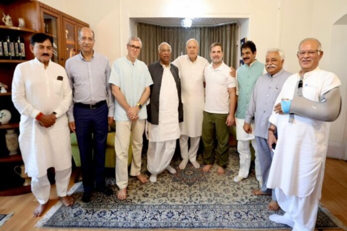 ಇಂಡಿಯಾ ಮೈತ್ರಿಕೂಟದಲ್ಲಿ ಬಿಕ್ಕಟ್ಟು ತಲೆದೋರುತ್ತಿದ್ದಂತೆ ಶ್ರೀನಗರಕ್ಕೆ ಆಗಮಿಸಿದ ಕಾಂಗ್ರೆಸ್ ಸಂಘಟನಾ ಪ್ರಧಾನ ಕಾರ್ಯದರ್ಶಿ ಕೆಸಿ ವೇಣುಗೋಪಾಲ್, ಹಿರಿಯ ನಾಯಕ ಸಲ್ಮಾನ್ ಖುರ್ಷಿದ್ ಅವರು, ನ್ಯಾಷನಲ್ ಕಾನ್ಫರೆನ್ಸ್ ಪ್ರಮುಖರಾದ ಫಾರೂಕ್ ಅಬ್ದುಲ್ಲಾ ಹಾಗೂ ಉಮರ್ ಅಬ್ದುಲ್ಲಾ ಅವರೊಂದಿಗೆ ಚರ್ಚಿಸಿದ್ರು.