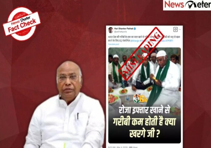 Kannada Fact Check: ಕಾಂಗ್ರೆಸ್ ಹಿರಿಯ ನಾಯಕ ಮಲ್ಲಿಕಾರ್ಜುನ ಖರ್ಗೆ ಕುಂಭ ಮೇಳ ಶುರುವಾದ ಬಳಿಕ, ಅದರ ಬಗ್ಗೆ ಹೇಳಿಕೆಯೊಂದನ್ನು ಕೊಟ್ಟಿದ್ದರು. ಕೇಂದ್ರ ಗೃಹ ಸಚಿವ ಅಮಿತ್ ಶಾ ಕುಂಭಮೇಳದಲ್ಲಿ ಮಿಂದ ಬಳಿಕ, ತ್ರಿವೇಣಿ ಸಂಗಮದಲ್ಲಿ ಸ್ನಾನ ಮಾಡುವುದರಿಂದ ದೇಶದ ಬಡತನ ಕೊನೆಗೊಳ್ಳುತ್ತದೆಯಾ ಅಂತಾ ಪ್ರಶ್ನಿಸಿದ್ದರು. ಇದೀಗ ಮಲ್ಲಿಕಾರ್ಜುನ ಖರ್ಗೆಯವರು ಇಫ್ತಾರ್ ಕೂಟದಲ್ಲಿ ಭಾಗವಹಿಸಿದ ಫೋಟೋ ಎಲ್ಲೆಡೆ ವೈರಲ್ ಆಗುತ್ತಿದೆ.