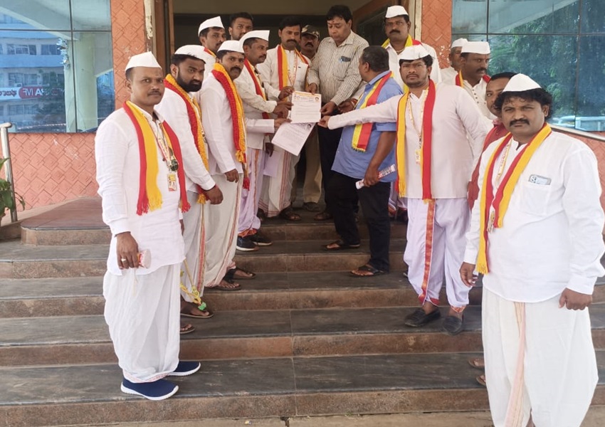 Hubballi News: ಹುಬ್ಬಳ್ಳಿ: ಕರ್ನಾಟಕದಲ್ಲಿ ಕನ್ನಡದ ನಾಮಫಲಕ ಶೇ ೬೦ ರಷ್ಟು ಕಡ್ಡಾಯವಾಗಿ ಇರಬೇಕೆಂದು ಆಗ್ರಹಿಸಿ, ಕರ್ನಾಟಕ ರಕ್ಷಣಾ ವೇದಿಕೆ ಅಧ್ಯಕ್ಷರಾದ ಪ್ರವೀಣ ಶೆಟ್ಟಿ ಬಣದ ವತಿಯಿಂದ, ಕರ್ನಾಟಕ ರಕ್ಷಣಾ ವೇದಿಕೆ ಧಾರವಾಡ ಜಿಲ್ಲಾಧ್ಯಕ್ಷರಾದ ಮಂಜುನಾಥ ಲೂತಿಮಠ ಇವರ ನೇತೃತ್ವದಲ್ಲಿ, ನಗರದ ತಹಶಿಲ್ದಾರಿಗೆ ಮನವಿ ಸಲ್ಲಿಸುವ ಮೂಲಕ ಬಾರಕೋಲ ಹಿಡಿದುಕೊಂಡು ವಿನೂತನ ಪ್ರತಿಭಟನೆ ನಡೆಸಲಾಯಿತು.
