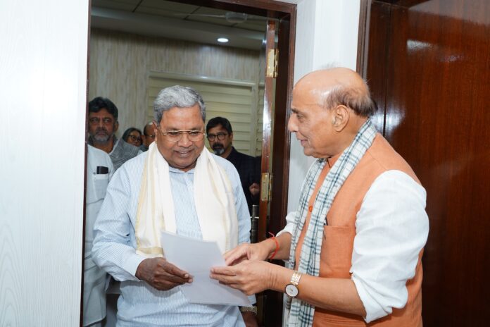ನವದೆಹಲಿ : ಎರಡು ದಿನಗಳ ಕಾಲ ದೆಹಲಿ ಪ್ರವಾಸದಲ್ಲಿರುವ ಮುಖ್ಯಮಂತ್ರಿ ಸಿದ್ದರಾಮಯ್ಯ ಅವರು ಕೇಂದ್ರ ರಕ್ಷಣಾ ಸಚಿವರಾದ ರಾಜನಾಥ್ ಸಿಂಗ್ ಅವರನ್ನು ಭೇಟಿಮಾಡಿ ರಾಜ್ಯದ ವಿವಿಧ ಅಭಿವೃದ್ದಿ ಕಾರ್ಯಗಳಿಗೆ ಸಂಬಂಧಿಸಿದಂತೆ ಮಹತ್ವದ ಚರ್ಚೆ ನಡೆಸಿದ್ದಾರೆ.