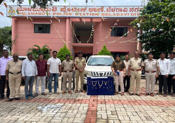 ಮಾಳಮಾರುತಿ ಠಾಣೆ ಪೊಲೀಸರಿಂದ ಅಂತರಾಜ್ಯ ಖದೀಮ ಅರೆಸ್ಟ್ ಆಗಿದ್ದು, ಬಂಧಿತ ಆರೋಪಿಯಿಂದ 20 ಲಕ್ಷ ಮೌಲ್ಯದ ವಸ್ತುವನ್ನು ವಶಕ್ಕೆ ಪಡೆಯಲಾಗಿದೆ. xvu ಕಾರು ಹಾಗೂ 10 ಲಕ್ಷ ಮೌಲ್ಯದ ಬಂಗಾರದ ಆಭರಣ ವಶಕ್ಕೆ ಪಡೆಯಲಾಗಿದೆ. ಬೆಳಗಾವಿಯ ಮಹಾಂತೇಶ ನಗರ, ಆಂಜನೇಯ ನಗರ, ಶಿವಬಸವ ನಗರದಲ್ಲಿ ಈತ ಕಳ್ಳತನ ಮಾಡಿದ್ದ.