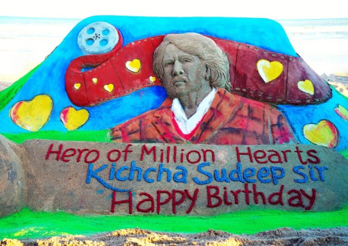 ಅಭಿನಯ ಚಕ್ರವರ್ತಿ ಸುದೀಪ್ ಅವರು ರಾಷ್ಟ್ರದಾದ್ಯಂತ ಖ್ಯಾತಿ ಜೊತೆಗೆ ಅಭಿಮಾನ ಸಮೂಹವನ್ನು ಹೊಂದಿರುವ ಕನ್ನಡದ ಮೇರುನಟ. ಸೆಪ್ಟೆಂಬರ್ 2ರಂದು ಸುದೀಪ್ ಅವರ ಜನ್ಮದಿನ. ಈ ಜನ್ಮದಿನವನ್ನು ಸ್ಮರಣೀಯವಾಗಿಸಲು ಮತ್ತು ಸಂಭ್ರಮವನ್ನು ದುಪ್ಪಟ್ಟುಗೊಳಿಸಲು ಮಾನಸ್ ಕುಮಾರ್ ಎಂಬ ಹೆಸರಾಂತ ಮರಳುಶಿಲ್ಪಿ ಒರಿಸ್ಸಾದ ಸಮುದ್ರ ತೀರದಲ್ಲಿ ಕಿಚ್ಚ ಸುದೀಪ್ ಅವರ ಮರಳು ಶಿಲ್ಪವನ್ನು ನಿರ್ಮಿಸುವ ಮೂಲಕ ಶುಭಾಶಯಗಳನ್ನು ತಿಳಿಸಿದ್ದಾರೆ.