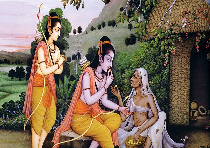 ರಾಮ ಶಬರಿಯನ್ನು ಭೇಟಿ ಮಾಡಿದಾಗ, ಶಬರಿ ರಾಮನನ್ನು ಕುರಿತು, ಶ್ರೀರಾಮ ನಿನ್ನನ್ನು ಭಕ್ತಿಯಿಂದ ಪೂಜೆ ಮಾಡಲು ನನ್ನ ಬಳಿ ಏನೂ ಇಲ್ಲ. ನಿನ್ನನ್ನು ಭಕ್ತಿ ಮಾಡುವ ಪರಿಯೂ ನನಗೆ ಗೊತ್ತಿಲ್ಲ ಎಂದಳಂತೆ. ಆಗ ಶ್ರೀರಾಮ, ನನ್ನ ಮೇಲೆ ನಿಜವಾದ ಭಕ್ತಿ ಇದ್ದವರು ಹೀಗೆ ಮಾಡುತ್ತಾರೆಂದು ಹೇಳುತ್ತಾ, ಭಕ್ತಿಯ ಅರ್ಥವನ್ನು ವಿವರಿಸುತ್ತಾನೆ.