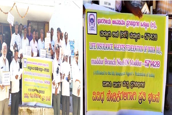 ಮಂಡ್ಯದ ಮದ್ದೂರಿನ ಭಾರತೀಯ ಜೀವ ವಿಮಾ ನಿಗಮ ಕಚೇರಿಯ ಮುಂಭಾಗ ಭಾರತೀಯ ಜೀವಾ ವಿಮಾ ಪ್ರತಿನಿಧಿಗಳ ಒಕ್ಕೂಟ ಘೋಷಣೆ ಕೂಗುತ್ತ ಪ್ರತಿಭಟನೆಯನ್ನು ನಡೆಸಿದರು ಹಾಗೂ ವಿವಿಧ ಬೇಡಿಕೆಗಳನ್ನು ಇಡೇರಿಸುವ ಬಗ್ಗೆ ಪ್ರಸ್ತಾವನೆ ಮಾಡಿದರು.ಪಾಲಿಸಿದರಾರ ಬೋನಸ್ ಹೆಚ್ಚಿಸಬೇಕು ಪಾಲಿಸಿದಾರರ ಸಾಲ ಮತ್ತು ಪ್ರೀಮಿಯಂ ವಿಳಂಬದ ಶುಲ್ಕದ ಬಡ್ಡಿ ದರಗಳು ಕಡಿಮೆ ಮಾಡಬೇಕು ಜಿಎಸ್ ಟಿ ಯನ್ನು ತೆಗೆಯಬೇಕು ಪಿಂಚನಿಯೋಜನೆ ಬೇಕು ವಹಿವಾಟು ಶುಲ್ಕವನ್ನು ಹೆಚ್ಚಿಸಬೇಕು ಇನ್ನೂ ಮುಂತಾದ ವಿವಿಧ ಬೇಡಿಕೆಗಳನ್ನು ಈಡೇರಿಸುವಂತೆ ಭಾರತೀಯ ಜೀವಾ ವಿಮಾ ನಿಗಮ ಮದ್ದುರು ಕಚೇರಿಯ ಮುಂದೆ ಪ್ರತಿಭಟನೆ ನಡೆಸಿದರು.