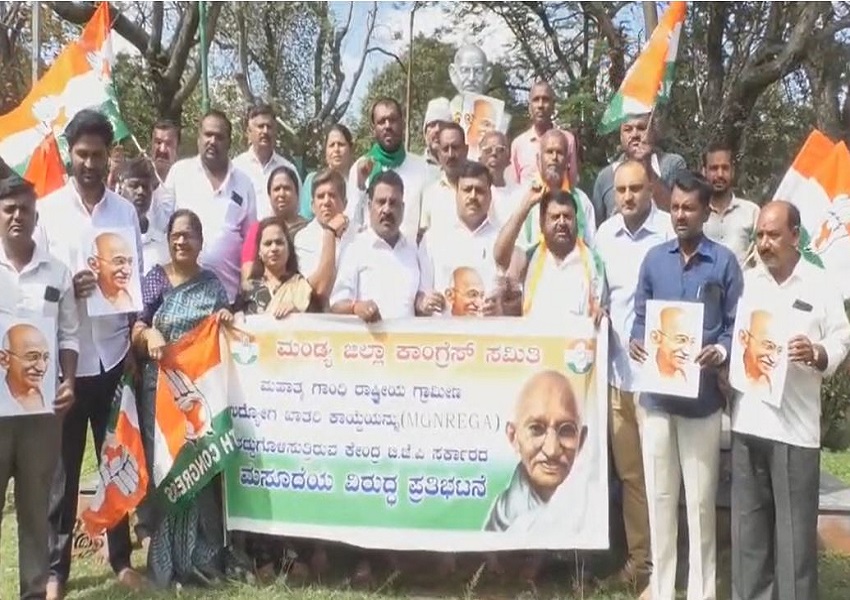 Mandya News: ಮಂಡ್ಯದಲ್ಲಿಂದು ಕೇಂದ್ರ ಸರ್ಕಾರದ ವಿರುದ್ಧ ಕಾಂಗ್ರೆಸ್ ಪ್ರತಿಭಟನೆ ನಡೆಸಿದೆ. ಕೇಂದ್ರದಿಂದ MGNREGA ರದ್ದುಗೊಳಿಸುವ ಮಸೂದೆಯ ವಿರುಧ್ಧ ಆಕ್ರೋಶ ವ್ಯಕ್ತಪಡಿಸಿ, ಮಂಡ್ಯ ಜಿಲ್ಲಾ ಕಾಂಗ್ರೆಸ್ ಸಮಿತಿ ವತಿಯವರು ಜಿಲ್ಲಾಧಿಕಾರಿ ಕಚೇರಿ ಎದುರಿನ ಗಾಂಧಿ ಪ್ರತಿಮೆ ಬಳಿ ಪ್ರತಿಭಟನೆ ನಡೆಸಿದ್ದಾರೆ.