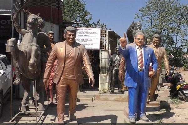 ದೇವರ ಕಲಾತ್ಮಕ ರಚನೆ ಜೊತೆಗೆ ದೇವರಂತಹ ಮನುಷ್ಯರ ಸ್ಟಾಚ್ಚು ಒಮ್ಮೆ ನಮ್ಮನ್ನ ಸ್ಥಬ್ದವಾಗಿಸುತ್ತೆ.ಹೌದು ಕಲಾಕುಸುರಿಯ ದೇವಿಯ ಪ್ರತಿರೂಪ ನೋಡಿ ಭಕ್ತಿಯಿಂದ ಕೈ ಮುಗಿಯೋ ಹಾಗೆ ಭಾಸವಾದ್ರೆ ಮನದಲ್ಲೇ ಗುಡಿ ಕಟ್ಟಿ ಆರಾದಿಸುತ್ತಿರೋ ಆರಾಧ್ಯ ದೈವ ಅಪ್ಪು ಕಲಾಕೃತಿ ನೋಡಿ ಕಣ್ಣಂಚಲ್ಲಿ ನೀರು ತರೋದಂತೂ ಸತ್ಯ.ನಿಜ ನಮ್ಮ ಸಂವಿಧಾನ ಶಿಲ್ಪಿ ಅಂಬೆಡ್ಕರ್ ಪ್ರತಿಮೆಯ ಜೊತೆ ಕರುನಾಡ ಯುವರತ್ನ ಡಾ.ಪುನೀತ್ ರಾಜ್ ಕುಮಾರ್ ಕಲಾಶೈಲಿ ನೋಡಿ ಅಪ್ಪು ಇನ್ನು ಜೀವಂತಬವಾಗಿದ್ದಾರೆ ಅನ್ನೋ ರೀತಿ ಭಾಸವಾದ್ರು ಮತ್ತೊಮ್ಮೆ ನೆನಪಾಗುವುದು.ಆ ಕರಾಳ ದಿನ.ಹೋಗ್ಲಿ ಬಿಡಿ ಆದ್ರೂ ಜೊತೆಗಿರದ ಜೀವ ಎಂದಿಗಿಂತ ಜೀವಂತ ಎಂದು ಸಮಾಧಾನ ಪಡಿಸಿಕೊಳ್ಳಬೇಕಷ್ಟೇ.