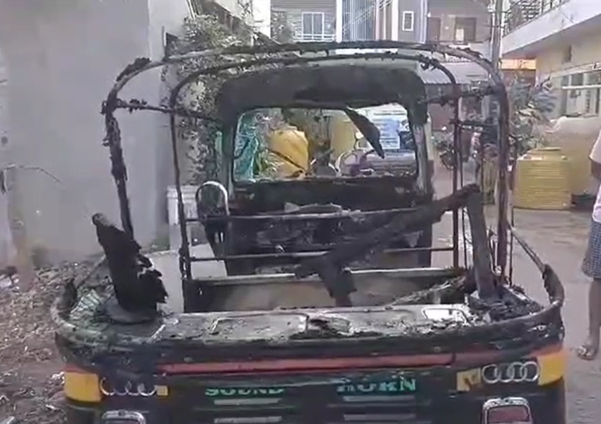 ಮನೆ ಮುಂದೆ ನಿಲ್ಲಿಸಿದ ಆಟೋಗೆ ಬೆಂಕಿ ಹಚ್ಚಿದ ದುಷ್ಕರ್ಮಿಗಳು