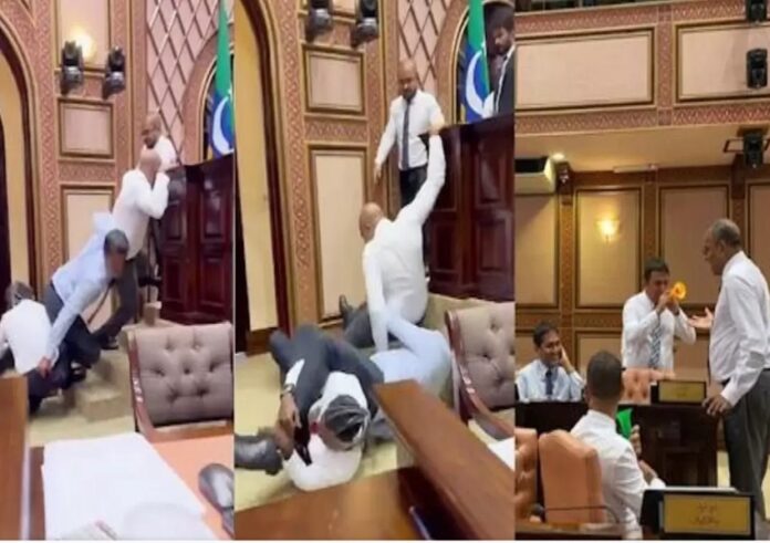 International News: ಸಾಮಾನ್ಯವಾಗಿ ಎಲ್ಲ ಸಂಸತ್ತಿನಲ್ಲೂ ವಾದ ವಿವಾದ ಇದ್ದೇ ಇರುತ್ತದೆ. ಅದು ಆರೋಗ್ಯಕರವಾಗಿದ್ದರೆ ಚೆಂದ. ಆದರೆ ಮಾಲ್ಡೀವ್ಸ್ ಸಂಸತ್ತಿನಲ್ಲಿ ಸಂಸದರು ಹೊಡೆದಾಾಡುವ ರೀತಿಯಲ್ಲಿ ವಾದ ವಿವಾದ ನಡೆದಿದೆ.