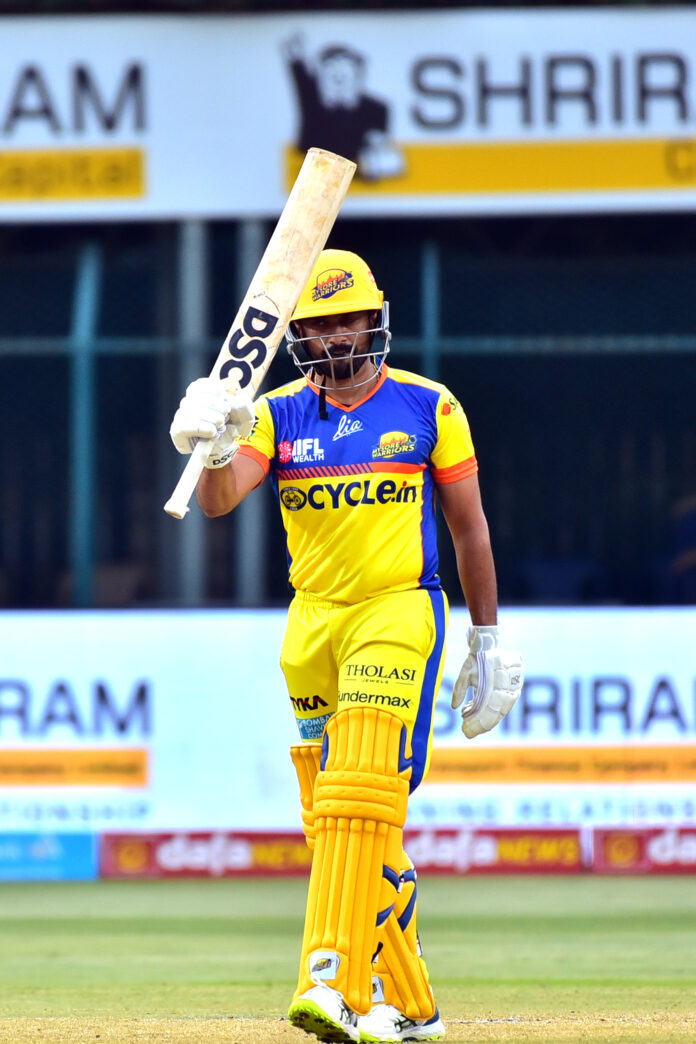 ಬೆಂಗಳೂರು: ಕರುಣ್ ನಾಯರ್ ಅವರ ಸೋಟಕ ಬ್ಯಾಟಿಂಗ್ ನೆರೆವಿನಿಂದ ಮೈಸೂರು ವಾರಿಯರ್ಸ್ ಹುಬ್ಬಳ್ಳಿ ಟೈಗರ್ಸ್ ವಿರುದ್ಧ 10 ವಿಕೆಟ್ಗಳ ಭರ್ಜರಿ ಗೆಲುವು ದಾಖಲಿಸಿದೆ.