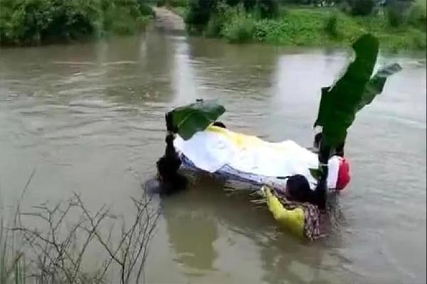 ನದಿಗೆ ಅಡ್ಡಲಾಗಿ ಸೇತುವೆಯಿಲ್ಲದ ಕೊರತೆಯೇ ಗ್ರಾಮಸ್ಥರ ಪರದಾಟಕ್ಕೆ ಕಾರಣವಾಗಿದೆ.ಸೇತುವೆಯ ಕೊರತೆಯಿಂದಾಗಿ ರಾಣಾ ಅವರ ಸಂಬಂಧಿಕರು ಅವರ ಶವವನ್ನು ತಮ್ಮ ಹೆಗಲ ಮೇಲೆ ಹೊತ್ತುಕೊಂಡು ನದಿಯನ್ನು ದಾಟಬೇಕಾಗಿ ಬಂತು. ಸುರಿಯುವ ಮಳೆಯಿಂದ ಶವವನ್ನು ರಕ್ಷಿಸಲು ಅದರ ಮೇಲೆ ಬಾಳೆ ಎಲೆಗಳನ್ನು ಹಾಸಲಾಗಿತ್ತು. ಈ ಘಟನೆಯ ವಿಡಿಯೋ ಇದೀಗ ಸಾಮಾಜಿಕ ಜಾಲತಾಣಗಳಲ್ಲಿ ಫುಲ್ ವೈರಲ್ ಆಗಿದೆ.