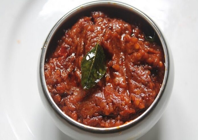 ಬೇಕಾಗುವ ಸಾಮಗ್ರಿ: ಒಂದು ಈರುಳ್ಳಿ, ಒಂದು ಟೊಮೆಟೋ, 3 ಒಣಮೆಣಸು, 4 ಎಸಳು ಬೆಳ್ಳುಳ್ಳಿ, ಕೊಂಚ ಹುಣಸೆಹಣ್ಣು ಮತ್ತು ಕೊಂಚ ಬೆಲ್ಲ, 2 ಸ್ಪೂನ್ ಎಣ್ಣೆ, ಉಪ್ಪು. ಒಗ್ಗರಣೆಗೆ, ಸಾಸಿವೆ, ಜೀರಿಗೆ, ಕರಿಬೇವು, ಉದ್ದಿನ ಬೇಳೆ, ಕಡಲೇಬೇಳೆ.