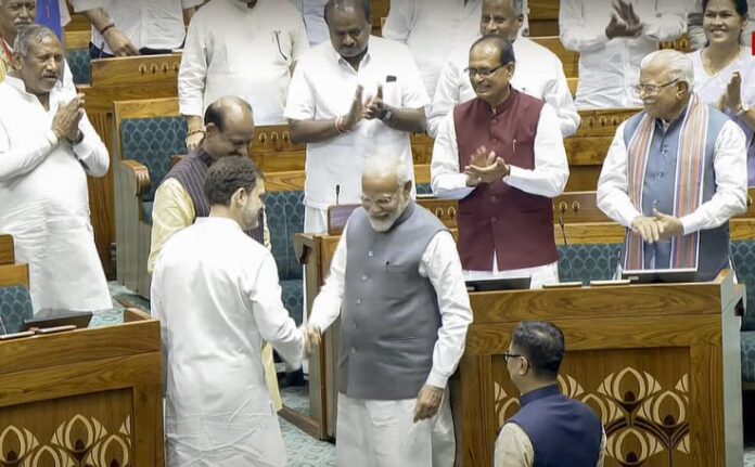 ಮೋದಿ- ರಾಹುಲ್ ಪರಸ್ಪರ ಹಸ್ತಾಲಾಘವ