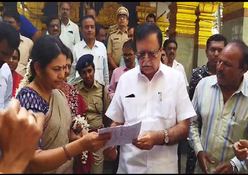Hassan Political News: ಹಾಸನ: ಹಾಸನಾಂಬ ದೇವಿ ಮತ್ತು ಶ್ರೀ ಸಿದ್ದೇಶ್ವರ ಸ್ವಾಮಿ ಜಾತ್ರಾ ಮಹೋತ್ಸವದ ಅಂಗವಾಗಿ ದೇವಾಲಯಕ್ಕೆ ಭೇಟಿ ನೀಡಿದ ಜಿಲ್ಲಾ ಉಸ್ತುವಾರಿ ಸಚಿವ ಕೆ. ಎನ್. ರಾಜಣ್ಣ ಸಿದ್ದತೆಯ ಬಗ್ಗೆ ಪರಿಶೀಲನೆ ನಡೆಸಿದರು. ಈ ಬಾರಿ ಭಕ್ತಾದಿಗಳು ಹೆಚ್ಚಿನ ಸಂಖ್ಯೆಯಲ್ಲಿ ಬರುವುದರಿಂದ ಯಾವುದೇ ರೀತಿಯ ತೊಂದರೆ ಆಗದಂತೆ ಎಚ್ಚರ ವಹಿಸಲು ಅಧಿಕಾರಿಗಳಿಗೆ ಸೂಚನೆ ನೀಡಿದರು.
