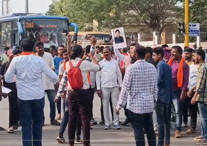 ನೇಹಾ ಕೊಲೆ ಮಾಡಿದ ಆರೋಪಿಯನ್ನು ಗಲ್ಲಿಗೇರಿಸಬೇಕು ಎಂದು ಆಗ್ರಹಿಸಿ ಹಿಂದೂಪರ ಸಂಘಟನೆಗಳ ಕಾರ್ಯಕರ್ತರು ಕೋರ್ಟ್ ವೃತ್ತದಲ್ಲಿ ಮಾನವ ಸರಪಳಿ ನಿರ್ಮಿಸಿ ವಾಹನಗಳನ್ನು ತಡೆದು ಪ್ರತಿಭಟನೆ ನಡೆಸಿದರು. ಪ್ರತಿಭಟನೆ ವೇಳೆಯೇ ಗೂಡ್ಸ್ ವಾಹನ ಚಾಲಕನೋರ್ವ ತನ್ನ ವಾಹನವನ್ನು ದಾಟಿಸಲು ಮುಂದಾದ ಆಗ ಪ್ರತಿಭಟನಾಕಾರರೊಬ್ಬರು ಆ ವಾಹನಕ್ಕೆ ಒದ್ದು ಅಲ್ಲೇ ನಿಲ್ಲಿಸುವಂತೆ ಆಕ್ರೋಶ ವ್ಯಕ್ತಪಡಿಸಿದರು.