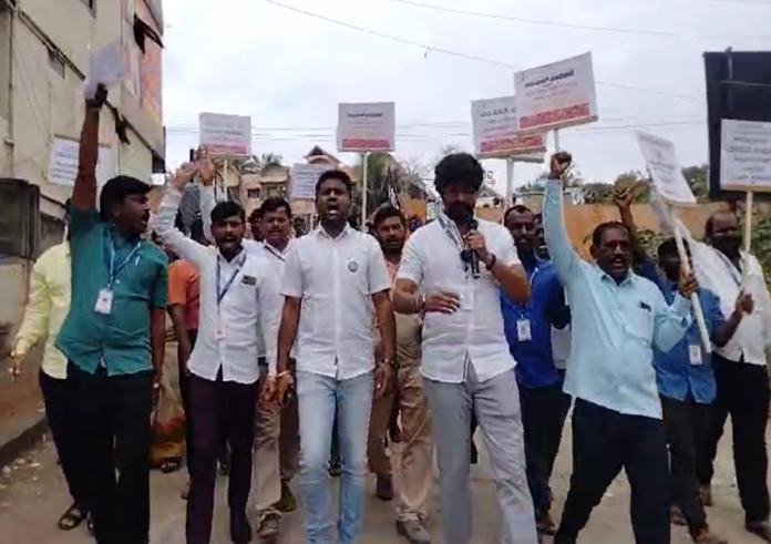 Dharwad News: ಧಾರವಾಡ: ಕೊಳಚೆ ಅಭಿವೃದ್ದಿ ನಿಗಮದ ಎದುರು ಅಧಿಕಾರಿ ವಿರುದ್ಧ, ಮಾನವ ಹಕ್ಕುಗಳ ಸಂರಕ್ಷಣೆ ಹಾಗೂ ಭ್ರಷ್ಟಾಚಾರ ನಿರ್ಮೂಲನೆ ಸಂಸ್ಥೆ ಪ್ರತಿಭಟನೆ ನಡೆಸುತ್ತಿದೆ.