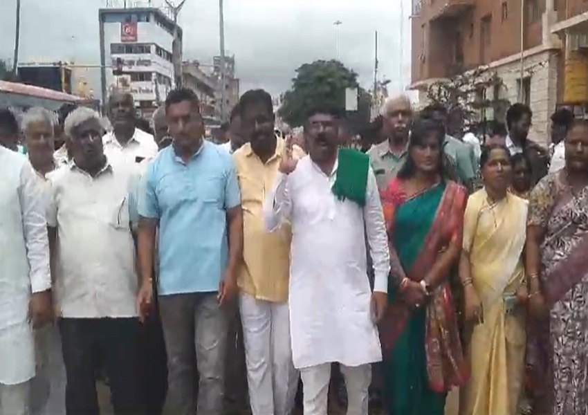 ರಾಜ್ಯದ ಮುಖ್ಯಮಂತ್ರಿಗಳಾದ ಸಿದ್ದರಾಮಯ್ಯನವರನ್ನು ತೇಜೋವಧೆ ಮಾಡುವ ಉದ್ದೇಶದಿಂದ ಮೈಸೂರು ಚಲೋ ಪಾದಯಾತ್ರೆ ಮಾಡುತ್ತಿರುವ ಬಿಜೆಪಿ ಮತ್ತು ಜೆಡಿಎಸ್ ಪಕ್ಷಗಳ ನಡೆಯನ್ನು ಖಂಡಿಸಿ, ಹಾಗೂ ಕೇಂದ್ರ ಸರ್ಕಾರದ ಕೈಗೊಂಬೆಯಾಗಿ ಕಾರ್ಯನಿರ್ವಹಿಸುತ್ತಿರುವ ರಾಜ್ಯಪಾಲರನ್ನು ರಾಷ್ಟ್ರಪತಿಗಳು ವಜಾಗೊಳಿಸಬೇಕೆಂದು ಆಗ್ರಹಿಸಿ ಪ್ರತಿಭಟನೆ ನಡೆಸಿದರು.