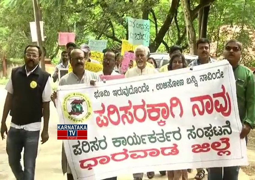 ಪರಿಸರವಾದಿ ಡಾ. ಸಂಜೀವ ಕುಲಕರ್ಣಿ ನೇತೃತ್ವದಲ್ಲಿ ಧಾರವಾಡ ಕಡಪಾ ಮೈದಾನದಿಂದ ಧಾರವಾಡ ಜಿಲ್ಲಾಧಿಕಾರಿ ಕಚೇರಿ ವರೆಗೆ ಮೆರವಣಿಗೆ ನಡೆಸಿ ಧಾರವಾಡ ಜಿಲ್ಲಾಧಿಕಾರಿ ಮೂಲಕ ಸರ್ಕಾರಕ್ಕೆ ಮನವಿ ಸಲ್ಲಿಕೆ ಮಾಡಲಾಯಿತು.