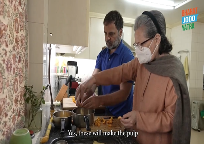 ಅಮ್ಮನೊಟ್ಟಿಗೆ ಸೇರಿ ಹಣ್ಣಿನ ಜಾಮ್ ತಯಾರಿಸಿದ ರಾಹುಲ್ ಗಾಂಧಿ.. ವೀಡಿಯೋ ವೈರಲ್