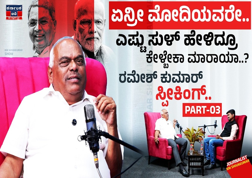 ಇನ್ನು ಮೋದಿಯವರ ಆಡಳಿತದ ಬಗ್ಗೆ ಮಾತನಾಡಿರುವ ರಮೇಶ್ ಕುಮಾರ್, ಮೋದಿಯವರೇ ನೀವು ಭ್ರಷ್ಟಾಚಾರದ ವಿರುದ್ಧ ಇದ್ದೀರಿ. ನಾವು ಮೆಚ್ಚುತ್ತೇವೆ. ಆದರೆ ಚುನಾವಣೆ ಸಮಯದಲ್ಲಿ ಅಗತ್ಯಕ್ಕಿಂತ ಹೆಚ್ಚು ಹಣ ವ್ಯಯವಾಗುತ್ತಿದೆ. ಭ್ರಷ್ಟಾಚಾರ ನಡೆಯುತ್ತಿದೆ. ಅದಕ್ಕಾಗಿ ಉಗ್ರ ನಿಯಮಗಳನ್ನು ತಂದು ಭ್ರಷ್ಟಾಚಾರವನ್ನು ನಿಲ್ಲಿಸಬಹುದು ನೀವು. ಯಾಕೆ ಆ ಬಗ್ಗೆ ಮಾತನಾಡುವುದಿಲ್ಲ..?ನಿಮ್ಮ ಈ ನಿಲುವನ್ನು ನಾವು ಸ್ವೀಕರಿಸಬೇಕಾ..? ವಿರೋಧಿಸಬೇಕಾ ನೀವೇ ಹೇಳಿ..?.. ನೀವು ಎಂದು ಪ್ರಧಾನಿ ಮೋದಿಗೆ ರಮೇಶ್ ಕುಮಾರ್ ಪ್ರಶ್ನಿಸಿದ್ದಾರೆ. ಸಂಪೂರ್ಣ ಸಂದರ್ಶನಕ್ಕಾಗಿ ವೀಡಿಯೋ ನೋಡಿ.