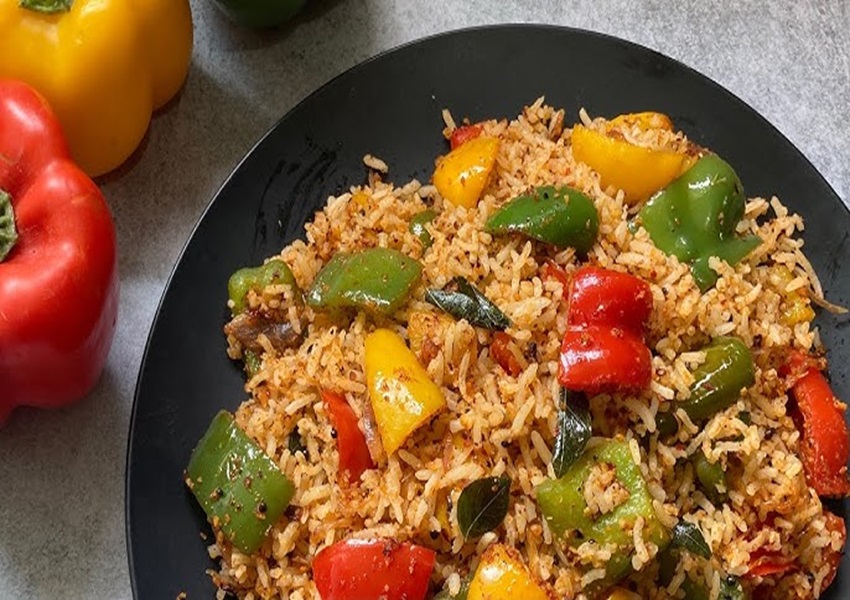 Recipe: ಬೇಕಾಗುವ ಸಾಮಗ್ರಿ: 1 ಅಥವಾ 2 ಕ್ಯಾಪ್ಸಿಕಂ, 2 ಈರುಳ್ಳಿ, 2 ಹಸಿಮೆಣಸು, ಅನ್ನ, 4 ಸ್ಪೂನ್ ಎಣ್ಣೆ, 10 ಎಸಳು ಬೆಳ್ಳುಳ್ಳಿ, ಖಾರದ ಪುಡಿ, ಚಿಟಿಕೆ ಅರಿಶಿನ, ಕೊತ್ತೊಂಬರಿ ಸೊಪ್ಪು, ರುಚಿಗೆ ತಕ್ಕಷ್ಟು ಉಪ್ಪು, ಒಗ್ಗರಣೆಗೆ ಸಾಸಿವೆ, ಜೀರಿಗೆ, ಉದ್ದಿನ ಬೇಳೆ, ಕರಿಬೇವು, ಕಡಲೆ ಬೇಳೆ.