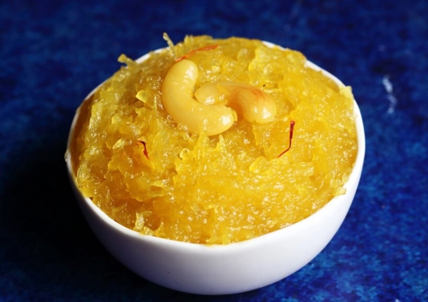 ಬೇಕಾಗುವ ಸಾಮಗ್ರಿ: ಸಣ್ಣ ತುಂಡು ಬೂದುಗುಂಬಳಕಾಯಿ, ಕೊಂಚ ಹಾಲಿನಲ್ಲಿ ನೆನೆಸಿಟ್ಟ ಕೇಸರಿ ದಳ, 1 ಕಪ್ ಸಕ್ಕರೆ, ಡ್ರೈಫ್ರೂಟ್ಸ್, ಅರ್ಧ ಕಪ್ ತುಪ್ಪ, ಏಲಕ್ಕಿ ಪುಡಿ.