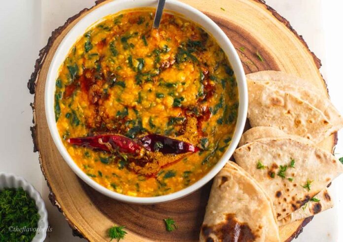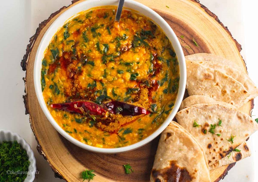 Recipe: ಬೇಕಾಗುವ ಸಾಮಗ್ರಿ: ಒಂದು ಕಟ್ಟು ಪಾಲಕ್ ಸೊಪ್ಪು, ಕಾಲು ಕಪ್ ತೊಗರಿ ಬೇಳೆ, ಅರ್ಧ ಕಪ್ ಕಡಲೆಬೇಳೆ, ಕಾಲು ಕಪ್ ಹೆಸರು ಬೇಳೆ, ಅರಿಶಿನ, ಉಪ್ಪು, ನಾಲ್ಕು ಸ್ಪೂನ್ ಎಣ್ಣೆ, ಕೊಂಚ ಹಿಂಗು, ಅರ್ಧ ಸ್ಪೂನ್ ಜೀರಿಗೆ, 5ರಿಂದ 6 ಬೆಳ್ಳುಳ್ಳಿ ಎಸಳು, 1 ಉದ್ದಕ್ಕೆ ಹೆಚ್ಚಿದ ಈರುಳ್ಳಿ, 1 ಸ್ಪೂನ್ ಖಾರದ ಪುಡಿ, 1 ಸ್ಪೂನ್ ಧನಿಯಾ ಪುಡಿ, ಗರಂ ಮಸಾಲೆ ಪುಡಿ, 2 ಸಣ್ಣಗೆ ಹೆಚ್ಚಿದ ಟೊಮೆಟೋ, 1 ಒಣಮೆಣಸು, ಅರ್ಧ ಸ್ಪೂನ್ ಕಸೂರಿ ಮೇಥಿ, ರುಚಿಗೆ ತಕ್ಕಷ್ಟು ಉಪ್ಪು, 2 ಸ್ಪೂನ್ ತುಪ್ಪ.