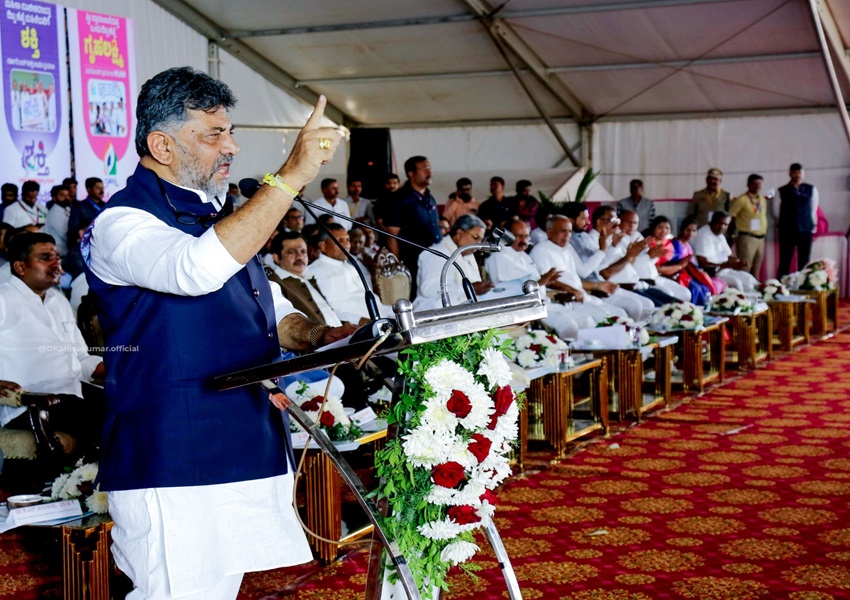 ಈ ವೇಳೆ ಮಾತನಾಡಿದ ಡಿಸಿಎಂ ಡಿಕೆಶಿ, ಕಾಂಗ್ರೆಸ್‌ ಸರ್ಕಾರ ಬಡವರ ಮೇಲಲ್ಲ, ಬದಲಾಗಿ ಬಡತನದ ವಿರುದ್ಧ ಹೋರಾಟ ಮಾಡುತ್ತಿದೆ. ಕೆಲವು ಬಿಜೆಪಿ ನಾಯಕರು ಕಾಂಗ್ರೆಸ್‌ ಗ್ಯಾರಂಟಿಗಳನ್ನು 420 ಗ್ಯಾರಂಟಿ ಅಂದಿದ್ದರು. ಅದು ನಕಲಿ ಗ್ಯಾರಂಟಿಗಳೇ ಆಗಿದ್ದರೆ ಬಿಜೆಪಿ ನಾಯಕರು ತಮ್ಮ ಕಾರ್ಯಕರ್ತರಿಗೆ ʼಉಚಿತ ಬಸ್‌ನಲ್ಲಿ ಓಡಾಡಬೇಡಿ, ಉಚಿತ ವಿದ್ಯುತ್‌ ಪಡೆಯಬೇಡಿ, ಗೃಹಲಕ್ಷ್ಮಿ ಯೋಜನೆಯ ಹಣ ತೆಗೆದುಕೊಳ್ಳಬೇಡಿʼ ಎಂದು ಹೇಳಲಿ ಎಂದು ಡಿಕೆಶಿ ಸವಾಲ್ ಹಾಕಿದ್ದಾರೆ.