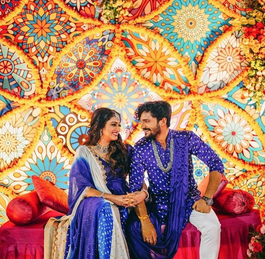 ಬೆಂಗಳೂರಿನ ಐಷಾರಾಮಿ ರೆಸಾರ್ಟ್ನಲ್ಲಿ ಇಬ್ಬರು ಕುಟುಂಬದವರು ಸೇರಿ ಅರಿಶಿಣ ಶಾಸ್ತ್ರ ಮತ್ತು ಮೆಹೇಂದಿ ಶಾಸ್ತ್ರ ಮಾಡಿದ್ದಾರೆ. ಈ ಕಾರ್ಯಕ್ರಮಕ್ಕೆ ಇಬ್ಬರೂ ಡಿಸೈನರ್ ಡ್ರೆಸ್ ಧರಿಸಿದ್ದಾರೆ.