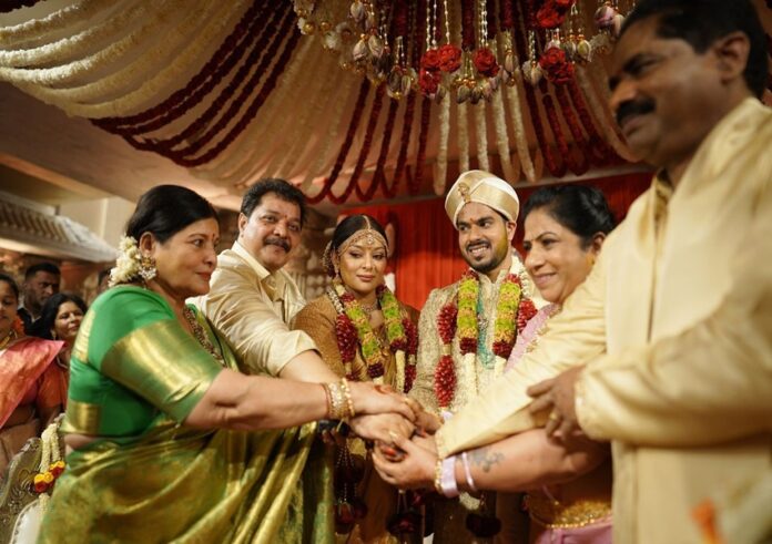 Sandalwood News: ಹಿರಿಯ ನಟಿ ಡಾ.ಜಯಮಾಲ ಹೆಚ್ ಎಂ ರಾಮಚಂದ್ರ ಅವರ ಪುತ್ರಿ ಸೌಂದರ್ಯ ವಿವಾಹ ರುಷಭ್ ಅವರೊಂದಿಗೆ ಬೆಂಗಳೂರಿನ ಅರಮನೆ ಆವರಣದಲ್ಲಿ ಅದ್ದೂರಿಯಾಗಿ ನೆರವೇರಿತು.