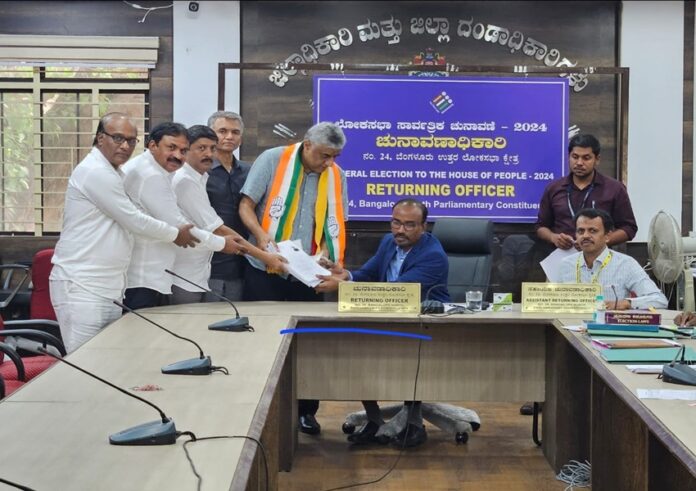 Political News: ನಾಮಪತ್ರ ಸಲ್ಲಿಕೆ ಬಳಿಕ ಬೆಂ. ಉತ್ತರ ಅಭ್ಯರ್ಥಿ ಪ್ರೊ. ರಾಜೀವ್ ಗೌಡ ಮಾತನಾಡಿದ್ದು, ಮೂರು ಜನ ಶಾಸಕರು, ಇಬ್ಬರು ಮುಖಂಡರು ನೇತೃತ್ವದಲ್ಲಿ ನಾಮಪತ್ರ ಸಲ್ಲಿಸಿದ್ದೇನೆ. ಗ್ಯಾರಂಟಿಯಿಂದ ಕಷ್ಟದ ಸಂದರ್ಭದಲ್ಲಿ ನೆಮ್ಮದಿ ಸಿಕ್ಕಿದೆ. ಜನ ಎಲ್ಲಿ ಸಿಕ್ಕಿದ್ರೂ ನಿಮ್ಮಂತರಿಗೆ ಟಿಕೆಟ್ ಸಿಕ್ಕಿದ್ದು ಒಳ್ಳೆದಾಯ್ತು ಅಂತಿದ್ದಾರೆ. ಕೇಂದ್ರದಿಂದ ರಾಜ್ಯಕ್ಕೆ ಅನ್ಯಾಯವಾಗಿದೆ. ರಾಜ್ಯದ ಪರ ಧ್ವನಿ ಎತ್ತುವವರು ಬೇಕಿದೆ ಎಂದಿದ್ದಾರೆ.