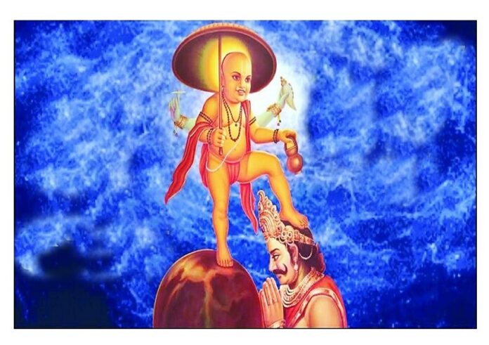 ಆಗ ವಾಮನ ರೂಪಿ ಶ್ರೀವಿಷ್ಣು ದೈತ್ಯನಾಗಿ ಬೆಳೆದು, ಮೂರು ಲೋಕದಲ್ಲಿ ತನ್ನ ಪಾದ ಪಸರಿಸಿ, ಬಲೀಂದ್ರನ ಅಷ್ಟು ಭೂಮಿಯನ್ನು ದಾನ ಪಡೆದು, ಯಜ್ಞ ನಿಲ್ಲಿಸುತ್ತಾನೆ. ಮತ್ತು ಈ ದಾನ ಮಾಡಿದ್ದಕ್ಕೆ, ಬಲೀಂದ್ರ ಪಾತಾಲ ಲೋಕದಲ್ಲಿ ಅಮರನಾಗಿರಲಿ ಎಂದು ವರ ನೀಡುತ್ತಾನೆ.
