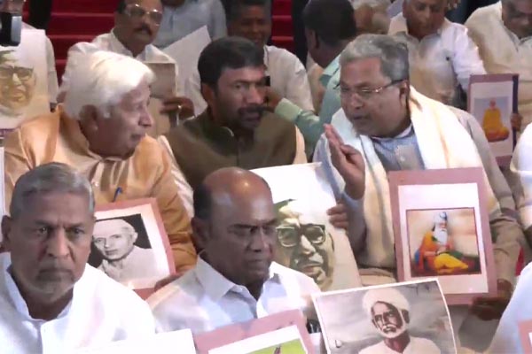 ಬೆಳಗಾವಿ: ಇಂದು ಬೆಳಗಾವಿಯ ಚಳಿಗಾಲದ ಅಧಿವೇಶನ ಹಿನ್ನೆಲೆ, ಬೆಳಗಾವಿಗೆ ಸಿದ್ದರಾಮಯ್ಯನವರು ಆಗಮಿಸಿ ಸುವರ್ಣ ಸೌಧದ ಮೆಟ್ಟಿಲುಗಳ ಮೇಲೆ ಕುಳಿತು ಪ್ರತಿಭಟನೆ ಮಾಡುತ್ತಿದ್ದಾರೆ. ಸಿದ್ದರಾಮಯ್ಯ ಅವರ ಜೊತೆ ಧರಣಿಯಲ್ಲಿ ಕಾಂಗ್ರೆಸ್ ಶಾಸಕರು, ಪರಿಷತ್ ಸದಸ್ಯರು ಭಾಗಿಯಾಗಿದ್ದಾರೆ. ಸಾವರ್ಕರ್ ಭಾವಚಿತ್ರ ಅನಾವರಣ ವಿರೋಧಿಸಿ ಕುವೆಂಪು, ನಾರಾಯಣಗುರು ಭಾವ ಚಿತ್ರ ಹಿಡಿದುಕೊಂಡು ಪ್ರತಿಭಟನೆ ನಡೆಸಲಿದ್ದಾರೆ.