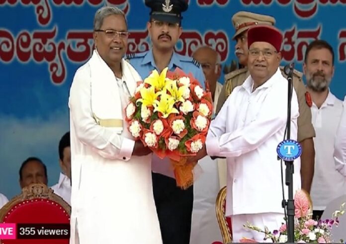 ಬೆಂಗಳೂರು: ಇಂದಿನಿಂದ ರಾಜ್ಯದಲ್ಲಿ ಕಾಂಗ್ರೆಸ್ ಸರ್ಕಾರದ ಆಡಳಿತ ಶುರುವಾಗಲಿದ್ದು, ಕಂಠೀರವ ಕ್ರೀಡಾಂಗಣದಲ್ಲಿ 8 ರಾಜ್ಯದ ಸಿಎಂ, ಕಾಂಗ್ರೆಸ್ ನಾಯಕರು, ಹಲವು ಕಾಂಗ್ರೆಸ್ ಅಭಿಮಾನಿಗಳ ಸಮ್ಮುಖದಲ್ಲಿ ಸಿದ್ದರಾಮಯ್ಯ ಎರಡನೇಯ ಬಾರಿಗೆ ಸಿಎಂ ಆಗ ಪ್ರಮಾಣವಚನ ಸ್ವೀಕರಿಸಿದ್ದಾರೆ.