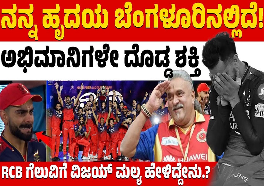 ಇನ್ನೂ ಇಂಡಿಯನ್ ಪ್ರೀಮಿಯರ್ ಲೀಗ್ ಇತಿಹಾಸದಲ್ಲೇ ರಾಯಲ್ ಚಾಲೆಂಜರ್ಸ್ ಬೆಂಗಳೂರು ತಂಡ ಮೊದಲ ಬಾರಿಗೆ ಚಾಂಪಿಯನ್ ಪಟ್ಟ ಅಲಂಕರಿಸಿದ್ದು, ತಂಡದ ಈ ಸಾಧನೆ ಕುರಿತು ಮಾಜಿ ಮಾಲೀಕ ವಿಜಯ್ ಮಲ್ಯ ತಂಡಕ್ಕೆ ಮಹತ್ವದ ಸಂದೇಶ ರವಾನಿಸಿದ್ದಾರೆ.
