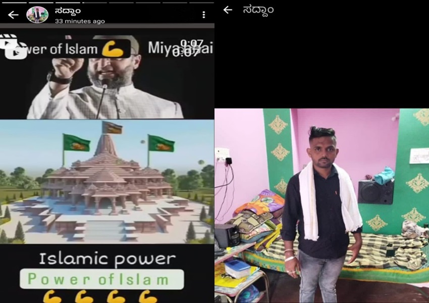 Dharwad News: ಧಾರವಾಡ: ರಾಮಮಂದಿರದ ಚಿತ್ರದ ಮೇಲೆ ಹಸಿರು ಬಾವುಟವನ್ನು ಇರಿಸಿ, ಫೋಟೋ ಎಡಿಟ್ ಮಾಡಿ, ಅದನ್ನು ಸ್ಟೇಟಸ್ಗೆ ಇಡುವುದಲ್ಲದೇ, ಇಸ್ಲಾಮಿಕ್ ಪವರ್ ತೋರಿಸುತ್ತೇನೆ ಎಂದು ಯುವಕನೋರ್ವ ಬರೆದುಕೊಂಡಿದ್ದಾನೆ.