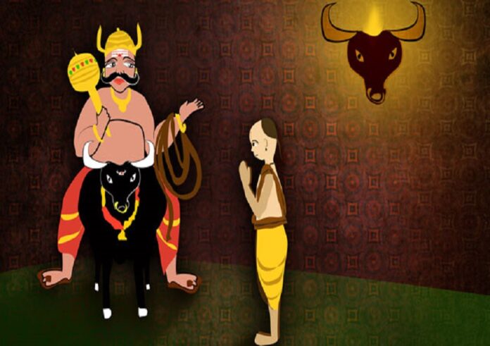 ಕಲಾಕಾರನನ್ನು ಕರೆದೊಯ್ಯಲು ಯಮ ಬಂದ. ಆದ್ರೆ ಯಮನಿಗೆ ಗೊಂದಲವುಂಟಾಯಿತು. ಇಷ್ಟೆಲ್ಲ ಕಲಾಕಾರರು ಧ್ಯಾನಕ್ಕೆ ಕುಳಿತಿದ್ದಾರೆ. ಇದರಲ್ಲಿ ನಿಜವಾದ ಕಲಾಕಾರ ಯಾರು ಎಂದು ಯಮ ಯೋಚಿಸತೊಡಗಿದ. ಆ ಅವನಿಗೊಂದು ಉಪಾಯ ಹೊಳೆಯಿತು. ಆಗ ಯಮ, ಈ ಮೂರ್ತಿಗಳೆಲ್ಲ ಸುಂದರವಾಗಿದೆ. ಆದರೆ ಇದರಲ್ಲೊಂದು ಕೊರತೆ ಇದೆ ಎಂದು ಹೇಳಿದ.