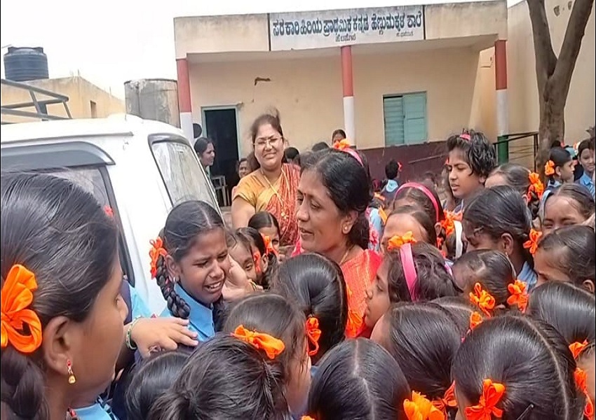Hubballi News: ಹುಬ್ಬಳ್ಳಿ: ವರ್ಗಾವಣೆಗೊಂಡ ಮುಖ್ಯ ಶಿಕ್ಷಕಿಗೆ ವಿದ್ಯಾರ್ಥಿಗಳು ಕಣ್ಣೀರ ವಿದಾಯ ಹೇಳಿದ್ದಾರೆ. ಹುಬ್ಬಳ್ಳಿ ತಾಲೂಕಿನ ಹೆಬಸೂರು ಗ್ರಾಮದಲ್ಲಿ ಈ ಘಟನೆ ನಡೆದಿದ್ದು, ಶಾಲೆಯ ಮುಖ್ಯ ಗುರು ರತ್ನಾ ಗ್ರಾಮಪುರೋಹಿತ ವರ್ಗಾವಣೆಯಾಗಿದ್ದಾರೆ.