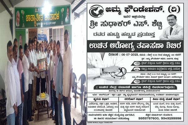 ಪ್ರಸಾದ್ ನೇತ್ರಾಲಯ ಸೂಪರ್ ಸ್ಪೆಷಾಲಿಟಿ ಆಸ್ಪತ್ರೆ ಉಡುಪಿ ಹಾಗು ಸಹ್ಯಾದ್ರಿ ನಾರಾಯಣ ಮಲ್ಟಿ ಸ್ಪೆಷಾಲಿಟಿ ಆಸ್ಪತ್ರೆ ಶಿವಮೊಗ್ಗದ ನುರಿತ ವೈದ್ಯರ ತಂಡದೊಂದಿಗೆ ಜುಲೈ 6ರಂದು ಬೆಳಗ್ಗೆ 10ರಿಂದ ಮದ್ಯಾಹ್ನ 1.30 ರ ವರೆಗೆ ಉಚಿತ ಆೋಗ್ಯ ಶಿಬಿರವನ್ನು ಆಯೋಜಿಸಿದ್ದರು.