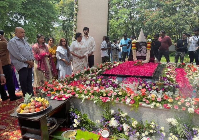 ಬೆಂಗಳೂರು: ನಿನ್ನೆ ರೆಬೆಲ್ ಸ್ಟಾರ್ ಅಂಬರೀಷ್ ಹುಟ್ಟುಹಬ್ಬವಿದ್ದು, ಸುಮಲತಾ ಅಂಬರೀಷ್ ಅಂಬಿ ಸಮಾಧಿಗೆ ಪೂಜೆ ಸಲ್ಲಿಸಿದ್ದರು. ಇಂದು ಅಭಿಷೇಕ್ ಮತ್ತು ಅವಿವಾ ವಿವಾಹದ ಆಮಂತ್ರಣ ಪತ್ರವನ್ನು ಅಂಬಿ ಸಮಾಧಿಯ ಮೇಲಿರಿಸಿ ಪೂಜೆ ಸಲ್ಲಿಸಲಾಯಿತು. ಈ ವೇಳೆ ನಟ, ಅಭಿಷೇಕ್ ಅಂಬರೀಷ್, ಅವರ ಭಾವಿ ಪತ್ನಿ ಅವಿವಾ ಸೇರಿ ಹಲವರು ಉಪಸ್ಥಿತರಿದ್ದರು.