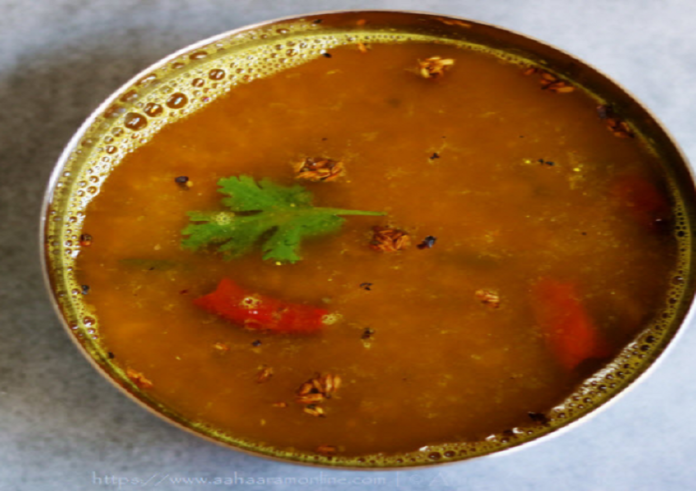 ಬೇಕಾಗುವ ಸಾಮಗ್ರಿ: ನಾಲ್ಕು ಸ್ಪೂನ್ ತೊಗರಿ ಬೇಳೆ, ಮೂರು ಟೊಮೆಟೋ, ಕೊಂಚ ಕೊತ್ತೊಂಬರಿ ಸೊಪ್ಪು, ಎರಡು ಹಸಿಮೆಣಸು, ಚಿಕ್ಕ ತುಂಡು ಹಸಿ ಶುಂಠಿ, ಚಿಕ್ಕ ತುಂಡು ಬೆಲ್ಲ ಮತ್ತು ಹುಣಸೆಹಣ್ಣು, ಚಿಟಿಕೆ ಅರಿಶಿನ, ಹೆಚ್ಚು ಖಾರ ಬೇಕಾದಲ್ಲಿ ಮತ್ತು ಕಲರ್ ಬರಲು ಖಾರದ ಪುಡಿ ಬಳಸಬಹುದು. ರುಚಿಗೆ ತಕ್ಕಷ್ಟು ಉಪ್ಪು. ಒಗ್ಗರಣೆಗೆ ಎರಡು ಸ್ಪೂನ್ ತುಪ್ಪ, ಸಾಸಿವೆ, ಜೀರಿಗೆ, ಉದ್ದಿನ ಬೇಳೆ, ಕಡಲೆ ಬೇಳೆ, ಕರಿಬೇವು, ಎರಡು ಒಣ ಮೇಣಸಿನಕಾಯಿ, ಚಿಟಿಕೆ ಇಂಗು.