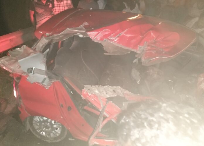 ತುಮಕೂರು ತಾಲ್ಲೂಕಿನ ಬೆಳಧರ ಗೇಟ್ ಬಳಿ ಖಾಸಗಿ ಬಸ್ ಹಾಗೂ ಕಾರಿನ ನಡುವೆ ಭೀಕರ ಮುಖಾಮುಖಿ ಅಪಘಾತ ಸಂಭವಿಸಿದೆ. ಕಾರಿನಲ್ಲಿ ಇದ್ದ ಐವರ ಪೈಕಿ ಮೂವರು ಸ್ಥಳದಲ್ಲೇ ಮೃತಪಟ್ಟಿದ್ದು, ಇಬ್ಬರು ಗಂಭೀರವಾಗಿ ಗಾಯಗೊಂಡಿದ್ದಾರೆ. ಮೃತರು ಧರ್ಮಸ್ಥಳಕ್ಕೆ ಹೋಗುತ್ತಿದ್ದ ವೇಳೆ ಅಪಘಾತ ಸಂಭವಿಸಿದೆ.