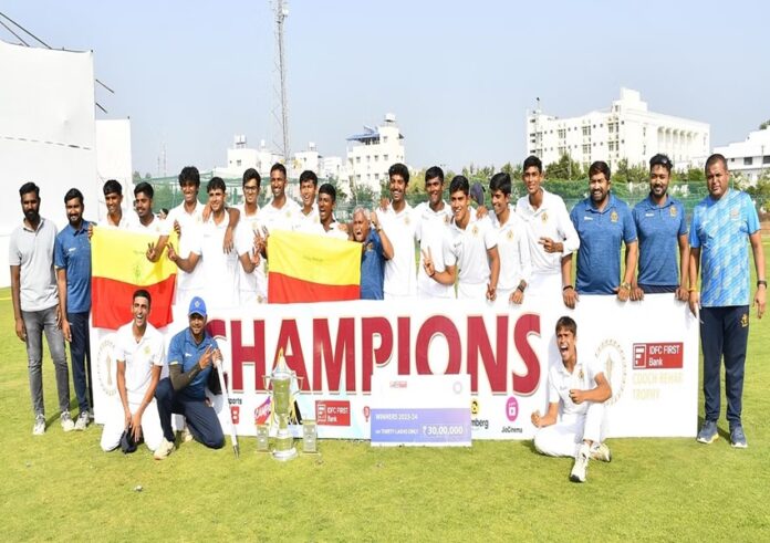 79 ವರ್ಷಗಳಲ್ಲಿ ಮೊದಲ ಬಾರಿಗೆ ಕೂಚ್ ಬಿಹಾರ್ ಟ್ರೋಫಿ ಗೆದ್ದಿರುವ ಕರ್ನಾಟಕದ 19 ವರ್ಷದೊಳಗಿನವರ ಕ್ರಿಕೆಟ್ ತಂಡಕ್ಕೆ ಅಭಿನಂದನೆಗಳು. ಈ ಗೆಲುವು ಸಂಕ್ರಾಂತಿ ಹಬ್ಬದ ಸಂಭ್ರಮವನ್ನು ಹೆಚ್ಚಿಸಿದೆ.