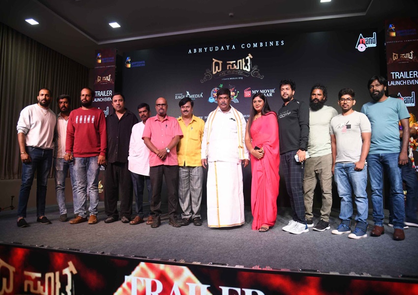 ಮಾಲತಿ ಗೌಡ ಹಾಗೂ ರಾಮಸ್ವಾಮಿ ಅವರು ನಿರ್ಮಿಸಿರುವ, ಎಸ್ ಭಗತ್ ರಾಜ್ ನಿರ್ದೇಶಿಸಿರುವ ಹಾಗೂ ಬಾಲಿವುಡ್ ನಿಂದ ಬಂದಿರುವ ಕಮಲ್ ಪ್ರಮುಖಪಾತ್ರದಲ್ಲಿ ನಟಿಸಿರುವ “ದ ಸೂಟ್” ಚಿತ್ರದ ಟ್ರೇಲರ್ ಬಿಡುಗಡೆ ಸಮಾರಂಭಕ್ಕೆ ಶಾಸಕ ಗೋಪಾಲಯ್ಯ, ಕರ್ನಾಟಕ ಚಲನಚಿತ್ರ ವಾಣಿಜ್ಯ ಮಂಡಳಿ ಅಧ್ಯಕ್ಷ ಎನ್ ಎಂ ಸುರೇಶ್, ಪ್ರಶಾಂತ್ ಚಕ್ರವರ್ತಿ ಮುಂತಾದ ಗಣ್ಯರು “ದ ಸೂಟ್” ಆಗಮಿಸಿ ಶುಭ ಕೋರಿದರು. ಆಕ್ಷನ್ ಪ್ರಿನ್ಸ್ ಧ್ರುವ ಸರ್ಜಾ ಅವರು ಈ ಚಿತ್ರದ ಟ್ರೇಲರ್ ನೋಡಿ ಖುಷಿಪಟ್ಟಿದ್ದಾರೆ. ಚಿತ್ರ ಯಶಸ್ವಿಯಾಗಲಿ ಎಂದು ವಿಡಿಯೋ ಮೂಲಕ ಶುಭ ಹಾರೈಸಿದ್ದಾರೆ. ಟ್ರೇಲರ್ ಬಿಡುಗಡೆ ನಂತರ ಚಿತ್ರತಂಡದ ಸದಸ್ಯರು ಪತ್ರಿಕಾಗೋಷ್ಠಿಯಲ್ಲಿ ಮಾತನಾಡಿದರು.