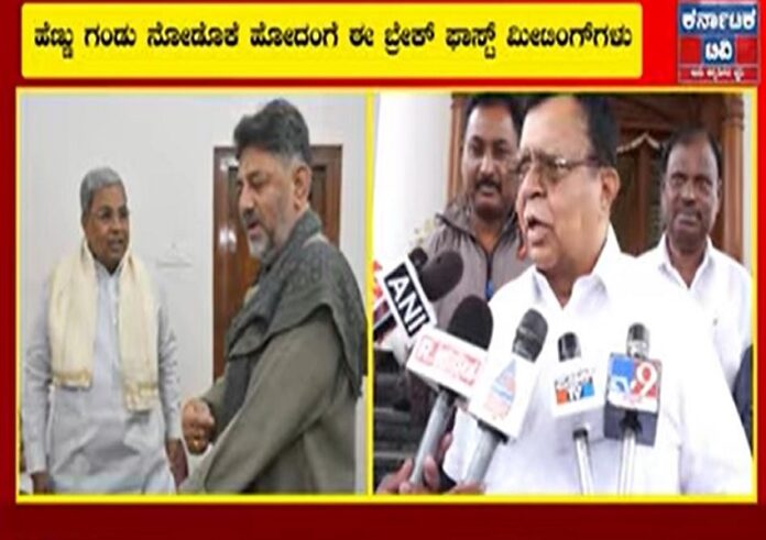 ಆ ಮೇಲೆ ಗಂಡು ನೋಡೋಕೆ ಬರ್ತಾರೆ. ಆ ರೀತಿಯಾಗಿದೆ ಈ ಬ್ರೇಕ್ ಫಾಸ್ಟ್ ಮೀಟಿಂಗ್. ಇರೋದು ಏನಿದಿಯೋ ಅದೇ ಮುಂದುವರಿದುಕೊಂಡು ಹೋಗುತ್ತೆ. ಯಾವುದೇ ರಿವರ್ಸ್ ಆಗಲ್ಲ. ಈ ಹಳ್ಳಿಗಳಲ್ಲಿ ಶಾಂತಿ ಆಗಬೇಕು ಅಂದ್ರೆ ಕುರಿ ಕೋಳಿ ಬಲಿ ಕೊಡ್ತಾರೆ. ಆ ರೀತಿಯಾಗಿ ಎರಡು ಮನೆಯಲ್ಲಿ ಆಗಿದೆ. ಬದಲಾವಣೆ ಇಲ್ಲ ಅಂತ ನಾವು ಅಂದುಕೊಂಡಿದ್ದೇವೆ. ಬದಲಾವಣೆ ಇದ್ರೆ ಹೈಕಮಾಂಡ್ ಹೇಳ್ತಾರೆ. ಸಚಿವ ಸಂಪುಟ ವಿಸ್ತರಣೆ ಬೆಳಗಾವಿ ಅಧಿವೇಶನದ ನಂತರ ಆಗುತ್ತೆ ಎಂದು ರಾಜಣ್ಣ ಹೇಳಿದ್ದಾರೆ.