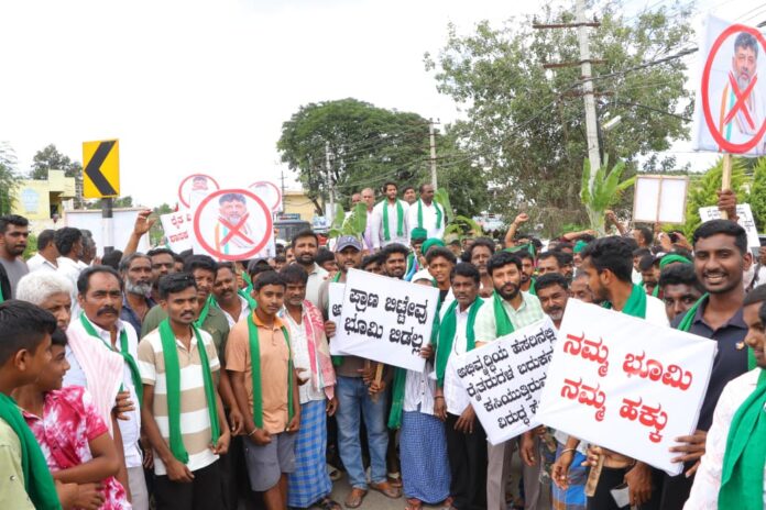 ಬಿಡದಿಯಲ್ಲಿ ಟೌನ್ ಶಿಪ್ ಯೋಜನೆ ವಿರೋಧಿಸಿ ನಡೆಯುತ್ತಿರುವ ರೈತರ ಹೋರಾಟಕ್ಕೆ, ಜೆಡಿಎಸ್ ಯುವ ಘಟಕದ ರಾಜ್ಯಾಧ್ಯಕ್ಷ ನಿಖಿಲ್ ಕುಮಾರಸ್ವಾಮಿ ಬೆಂಬಲ ಸೂಚಿಸಿದ್ದಾರೆ. ಜೊತೆಗೆ ಪ್ರತಿಭಟನೆಯಲ್ಲಿ ಪಾಲ್ಗೊಂಡಿದ್ದು, ಅನ್ನದಾತರ ಪರ ನಿಂತಿದ್ದಾರೆ.