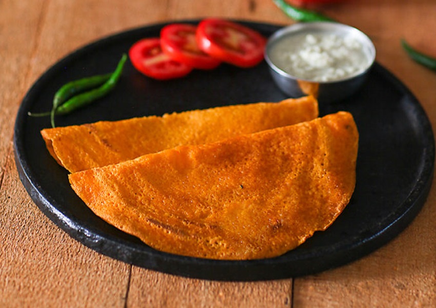 ಮಾಡುವ ವಿಧಾನ: ಮೊದಲು ಟೊಮೆಟೋ, ಶುಂಠಿ, ಅರಿಶಿನ, ಖಾರದ ಪುಡಿ, ಉಪ್ಪನ್ನು ಮಿಕ್ಸಿ ಜಾರ್ಗೆ ಹಾಕಿ, ರುಬ್ಬಿ, ಪೇಸ್ಟ್ ತಯಾರಿಸಿ. ಬಳಿಕ ಇದನ್ನು ಒಂದು ಮಿಕ್ಸಿಂಗ್ ಬೌಲ್ಗೆ ಹಾಕಿ, ರವೆ ಮತ್ತು ಅಕ್ಕಿ ಹಿಟ್ಟನ್ನು ಮಿಕ್ಸ್ ಮಾಡಿ, ಅರ್ಧ ಗಂಟೆ ಬದಿಗಿರಿಸಿ. ಬಳಿಕ ಇದಕ್ಕೆ ಈರುಳ್ಳಿ, ಹಸಿಮೆಣಸು, ಜೀರಿಗೆ ಹಾಕಿ ಮಿಕ್ಸ್ ಮಾಡಿ, ಪ್ಯಾನ್ ಬಿಸಿ ಮಾಡಿ, ಎಣ್ಣೆ ಸವರಿ ದೋಸೆ ಮಾಡಿದ್ರೆ, ಟೊಮೆಟೋ ದೋಸೆ ರೆಡಿ. ಇದನ್ನು ಕಾಯಿ ಚಟ್ನಿಯೊಂದಿಗೆ ಸರ್ವ್ ಮಾಡಿ.